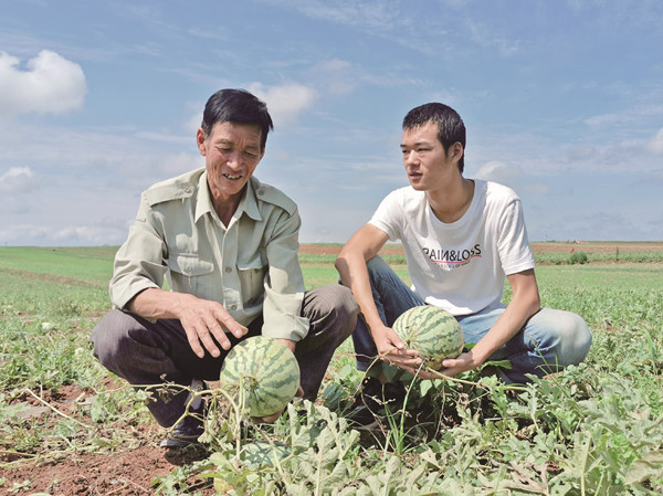 大学生陪父卖完自家的瓜 又为村里滞销的瓜打广告